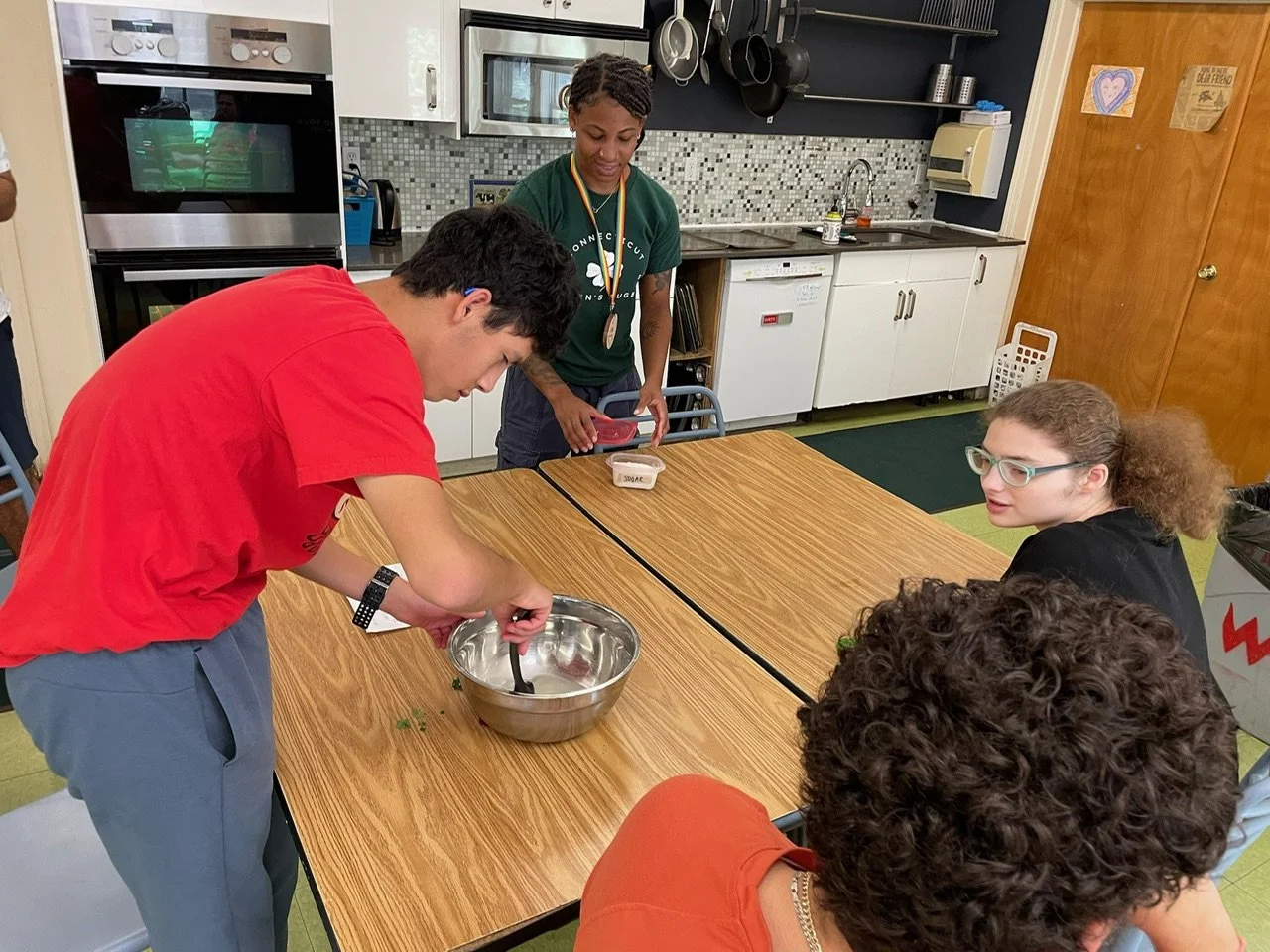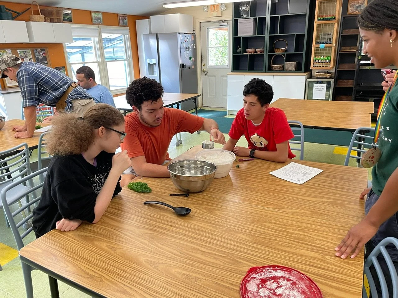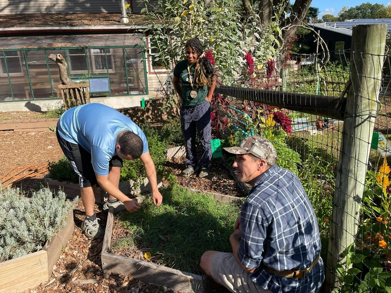 The High School Horticulture class visited Common Ground High School in New Haven for a Farm to Table experience. Students toured the gardens to learn about, taste and pick a variety of herbs and vegetables. They brought their fresh picked produce to the Common Ground kitchen where they made dough for their individual pizzas. They topped the dough with sauce, cheese, and fresh kale, chives, basil, and oregano. It was all delish! The group also had a chance to visit the farm animals. Thanks to Common Ground High School for hosting us!